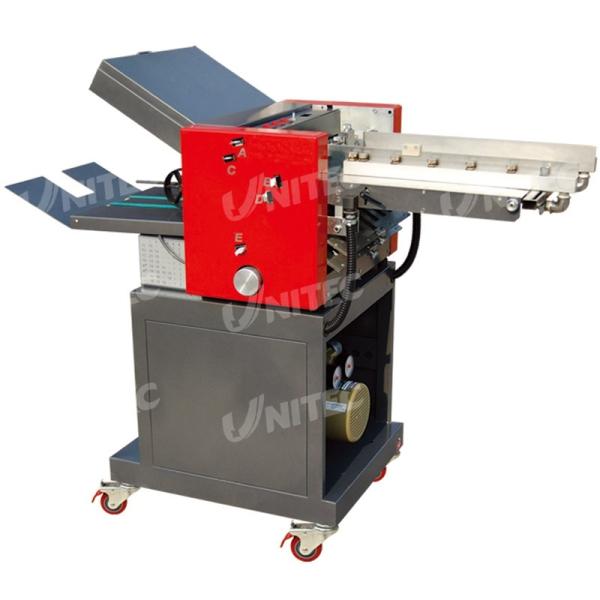 Folding machine is used for paper folding machine, and is the latest development of small desktop paper folding machine for on paper folding, the machine structure is reasonable, and the large rubber wheel paper feeding, separator and accurate, stable performance, convenient operation, high efficiency, widely used in large batches of product brochures,correspondene letters, business letters, folding.